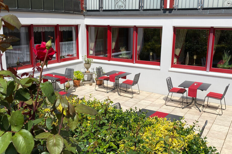 Im Sommer können Sie sich in unserem schönen Garten mit Freitsitz, Terrasse und Liegen entspannen.